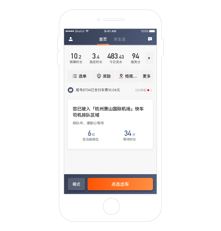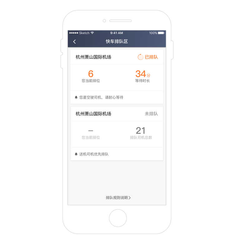 在排队页,司机可看到所在城市已开通的排队区域的当前所有排队司机数。