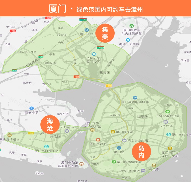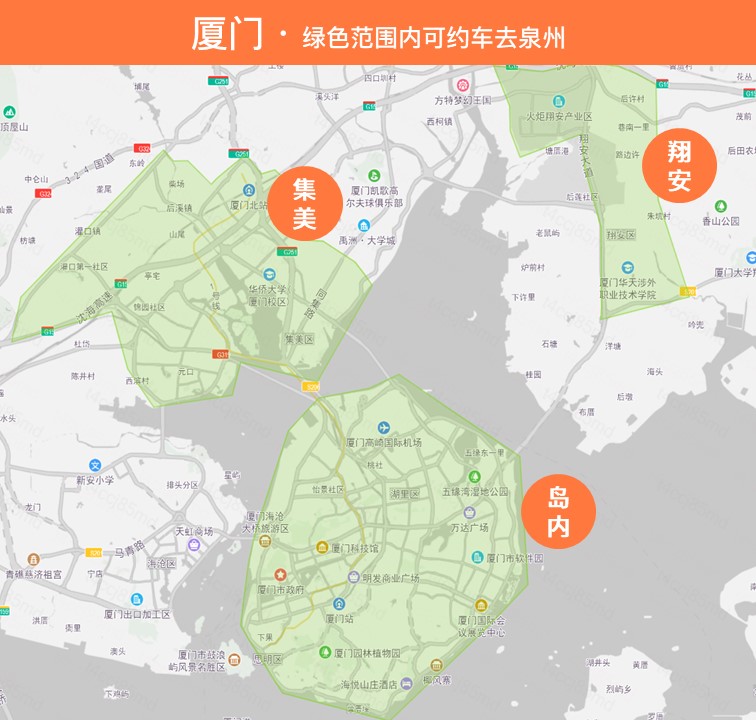 — 厦门可约车区域:岛内、集美、海沧、翔安