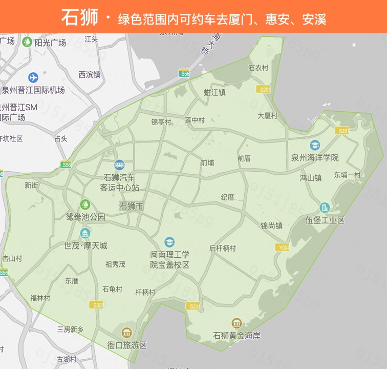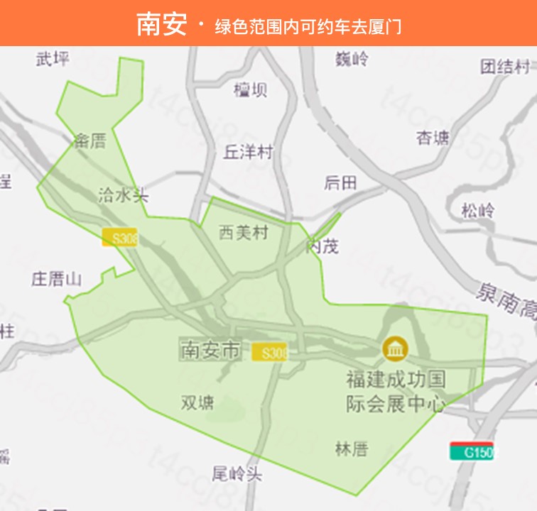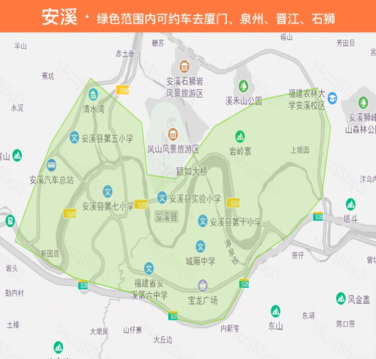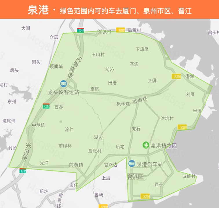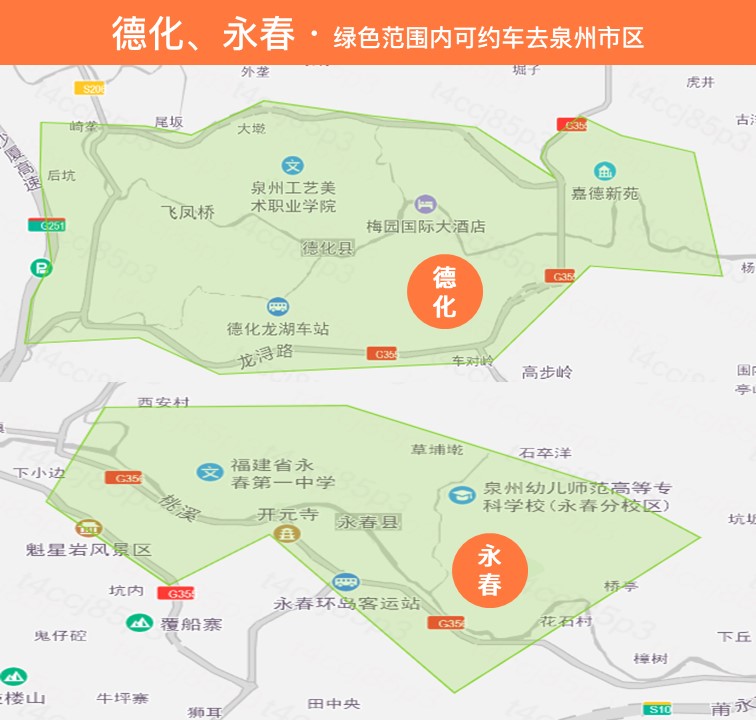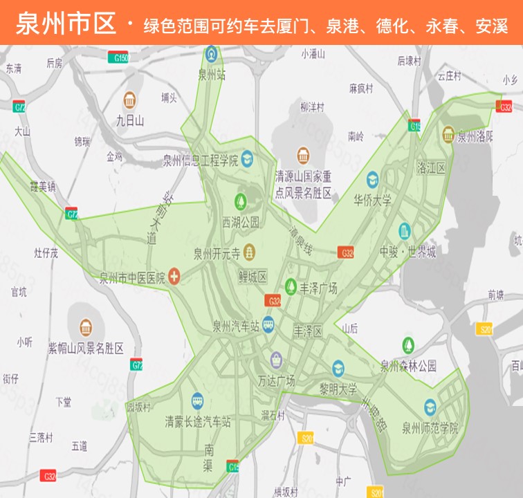 — 泉州可约车区域:市区、晋江、南安、安溪、惠安、德化、永春、泉港