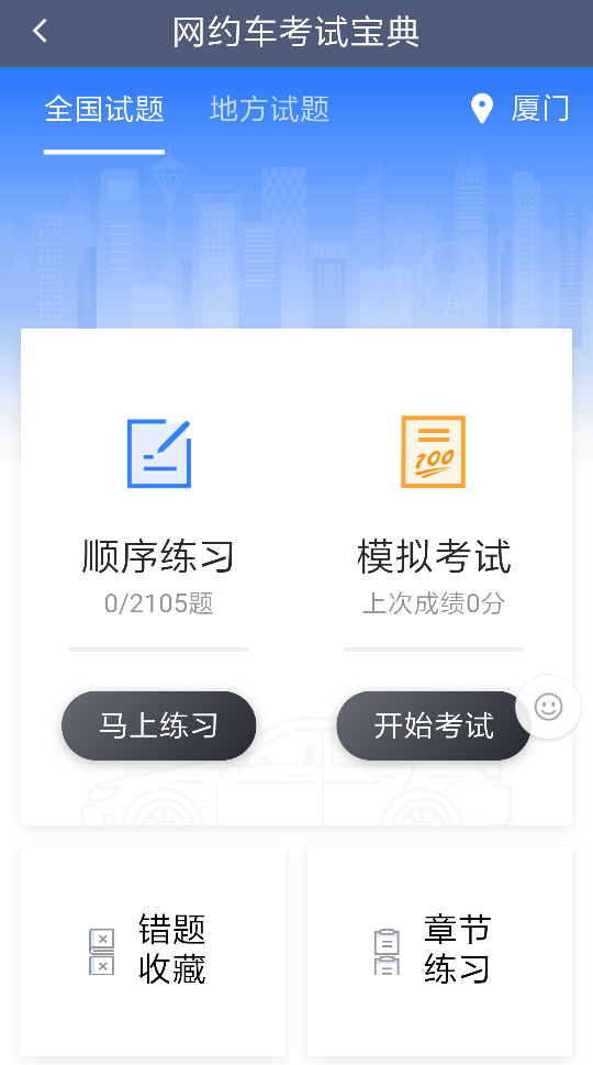 2、进入“网约车考试”,进入选择考试所在地的题目即可进行测验。