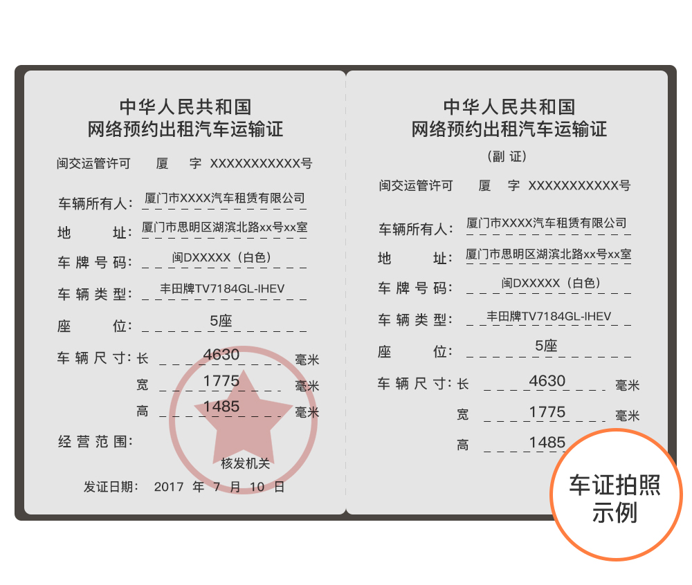 厦门《网络预约出租汽车运输证》拍照示例图: