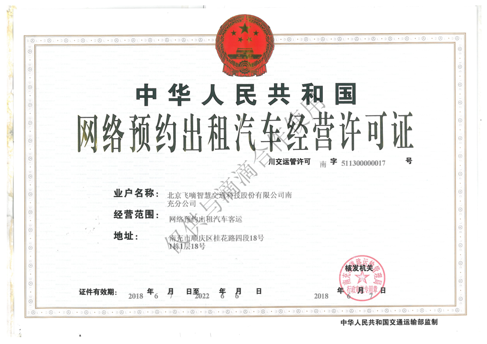 飞嘀打车 - 网约车经营许可证(南充)