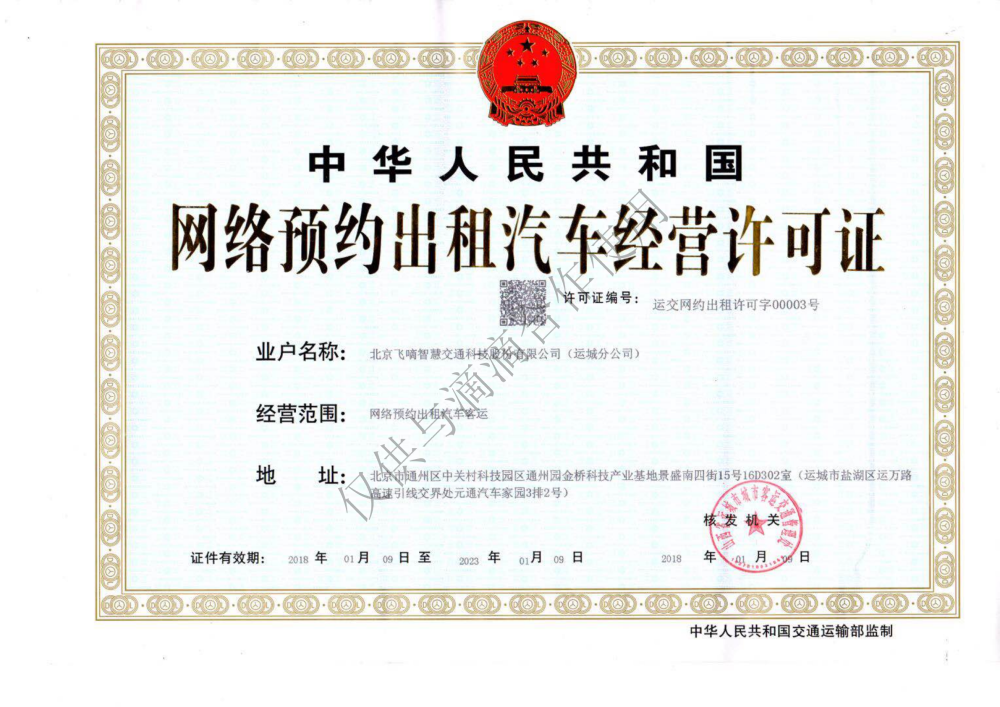 飞嘀打车 - 网约车经营许可证(运城)