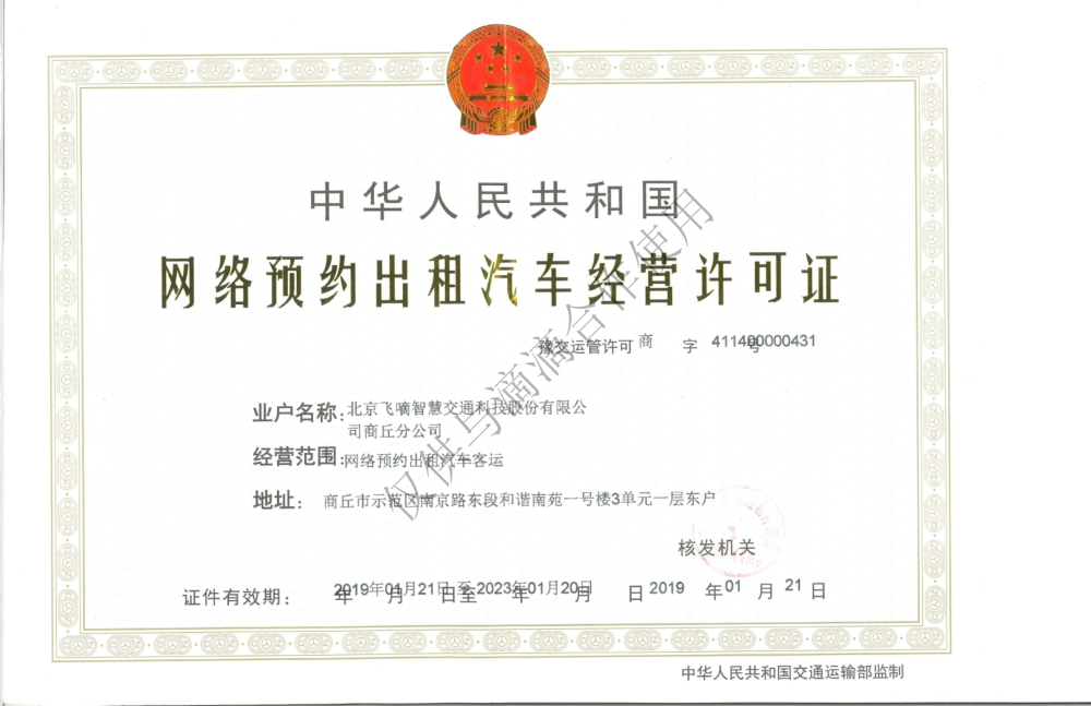 飞嘀打车 - 网约车经营许可证(商丘)