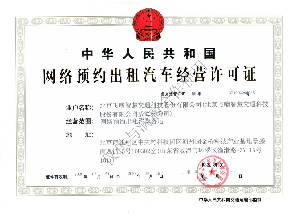 飞嘀打车 - 网约车经营许可证(威海)