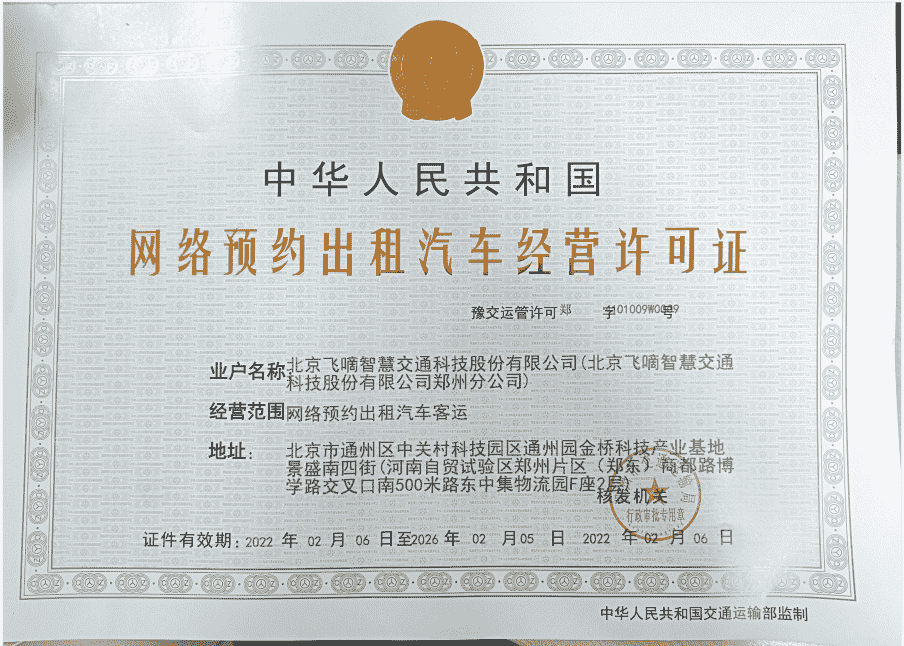 飞嘀打车 - 网约车经营许可证(郑州)