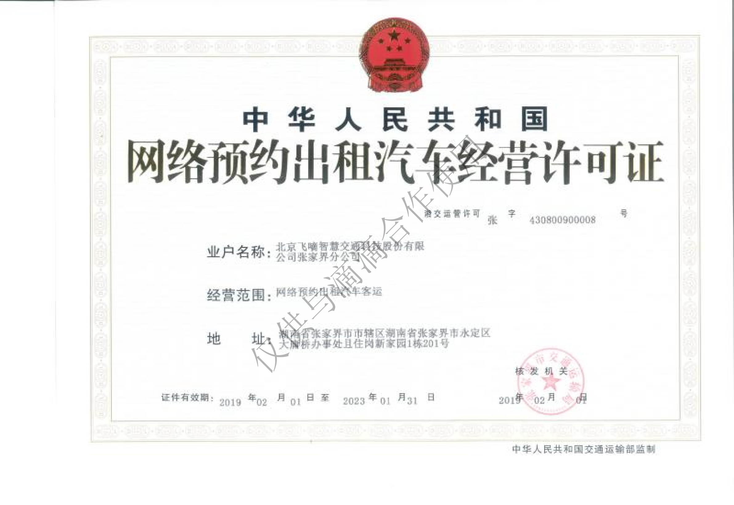 飞嘀打车 - 网约车经营许可证(张家界)