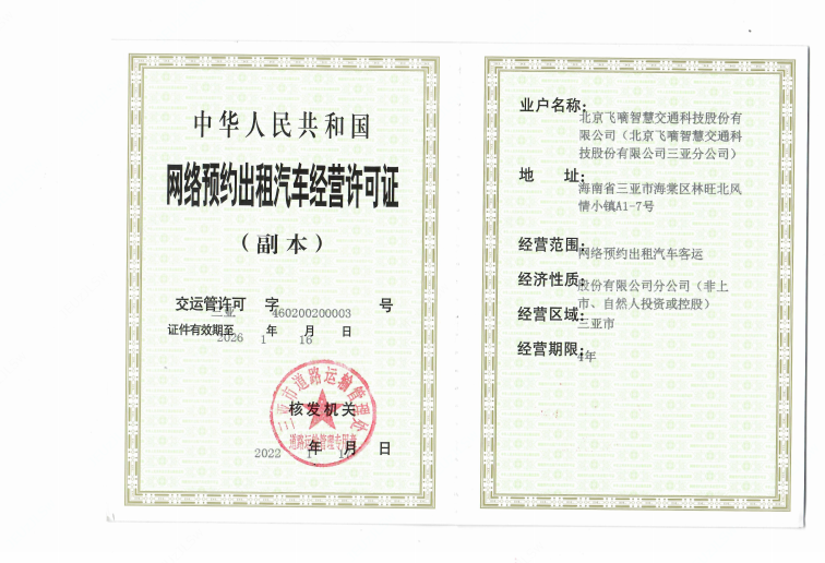 飞嘀打车 - 网约车经营许可证(三亚)