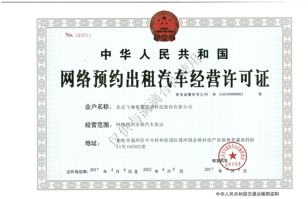飞嘀打车 - 网约车经营许可证(北京)