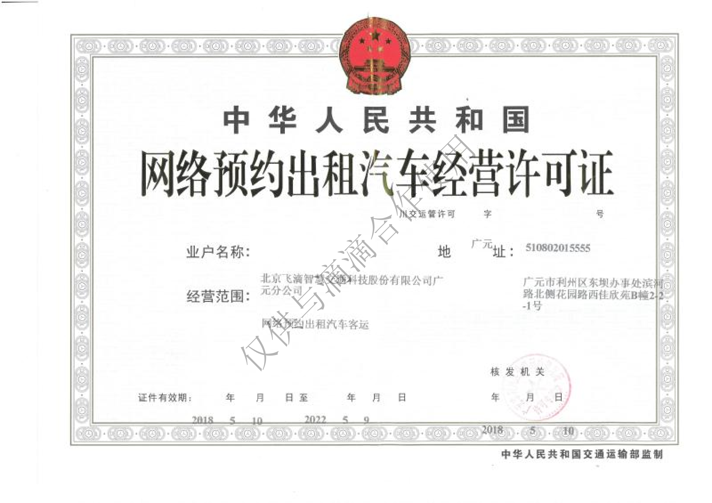 飞嘀打车 - 网约车经营许可证(广元)