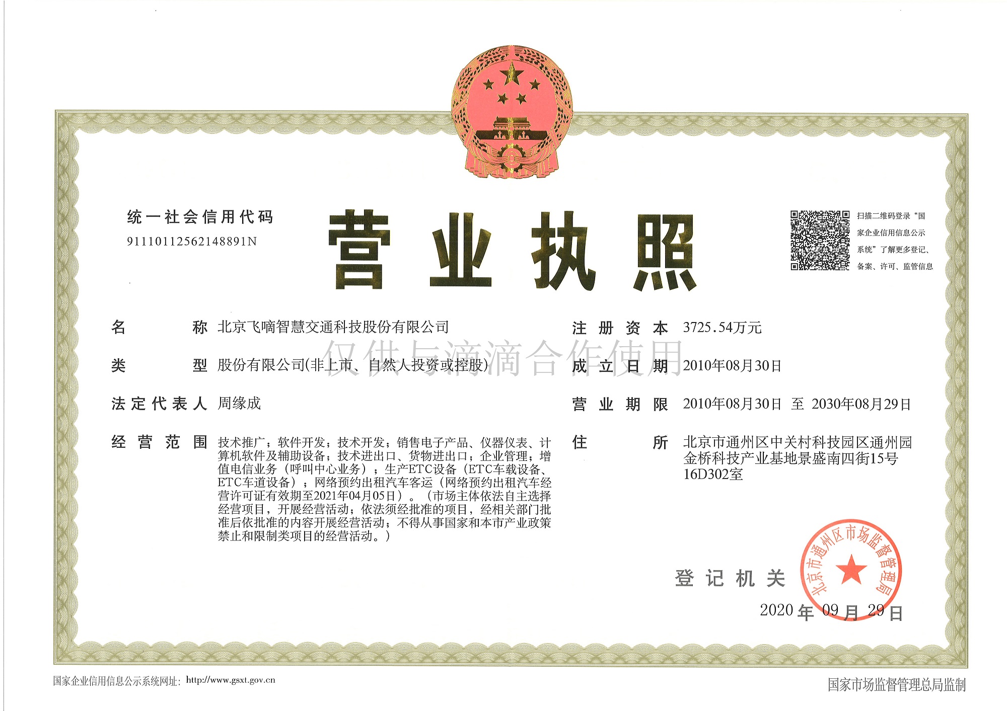 飞嘀打车-营业执照