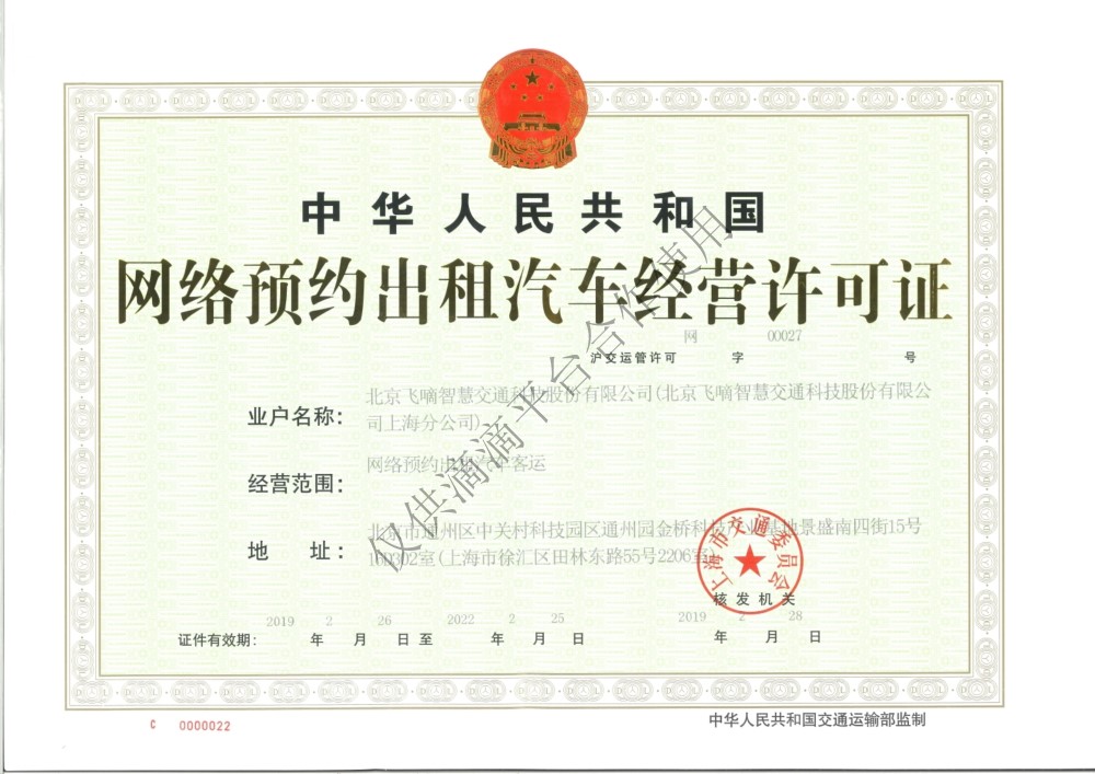 飞嘀打车 - 网约车经营许可证(上海)