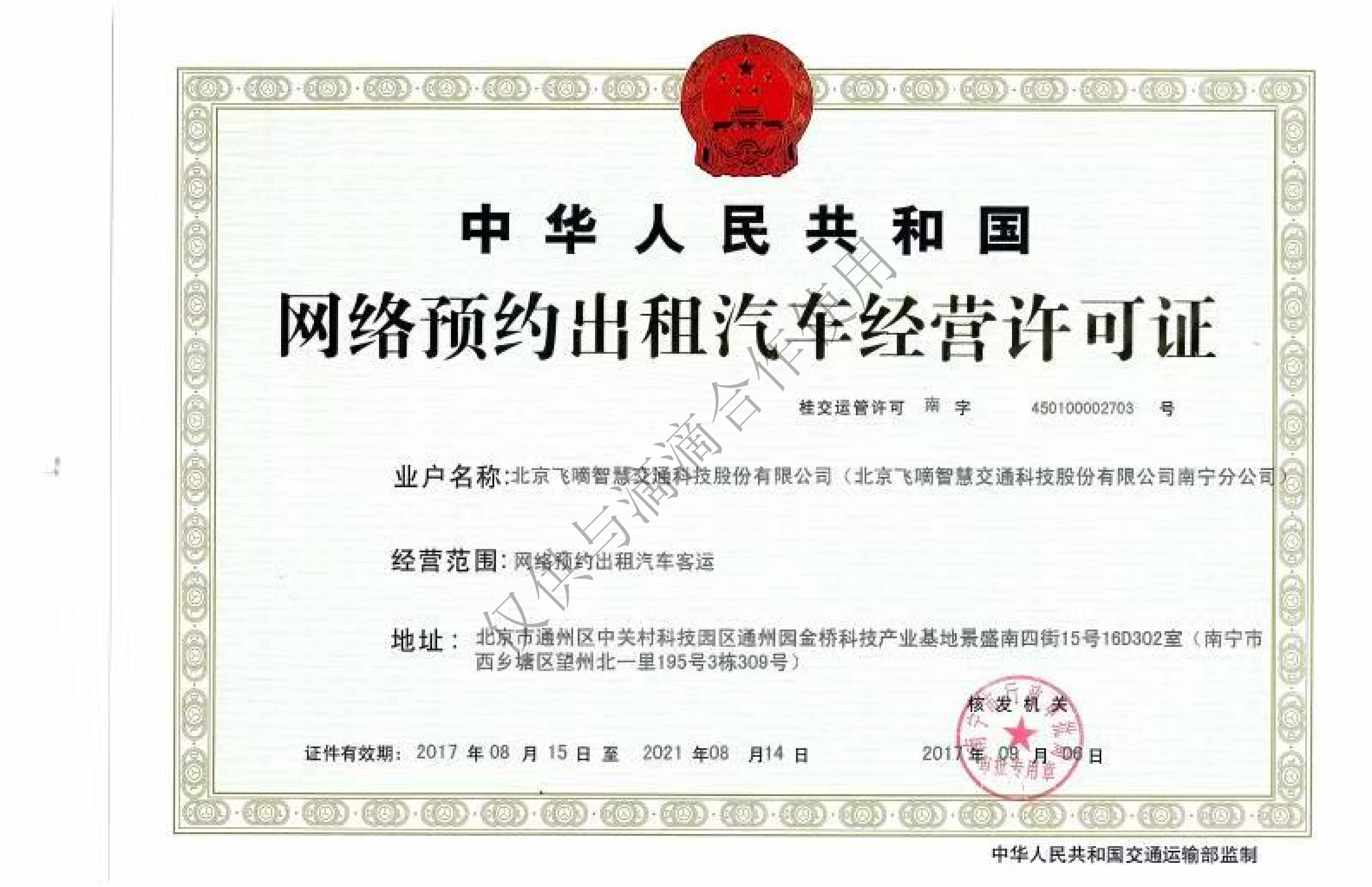 飞嘀打车 - 网约车经营许可证(南宁)