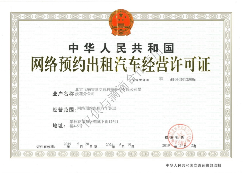 飞嘀打车 - 网约车经营许可证(攀枝花)