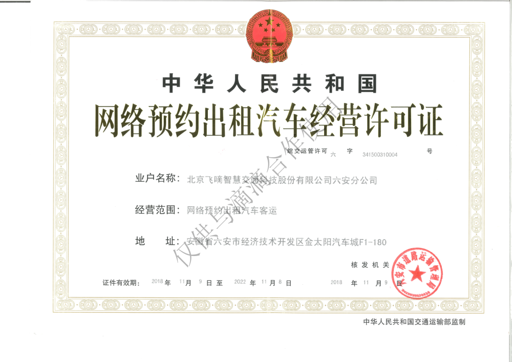 飞嘀打车 - 网约车经营许可证(六安)
