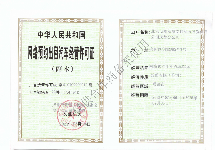 飞嘀打车- 网约车经营许可证(成都)