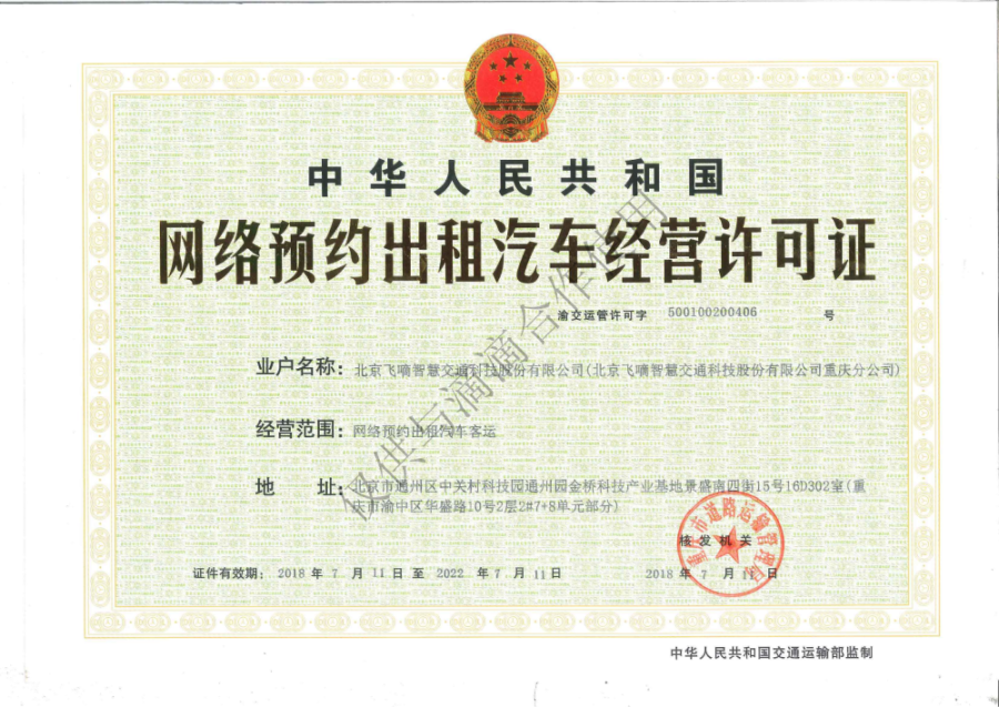 飞嘀打车 - 网约车经营许可证(重庆)