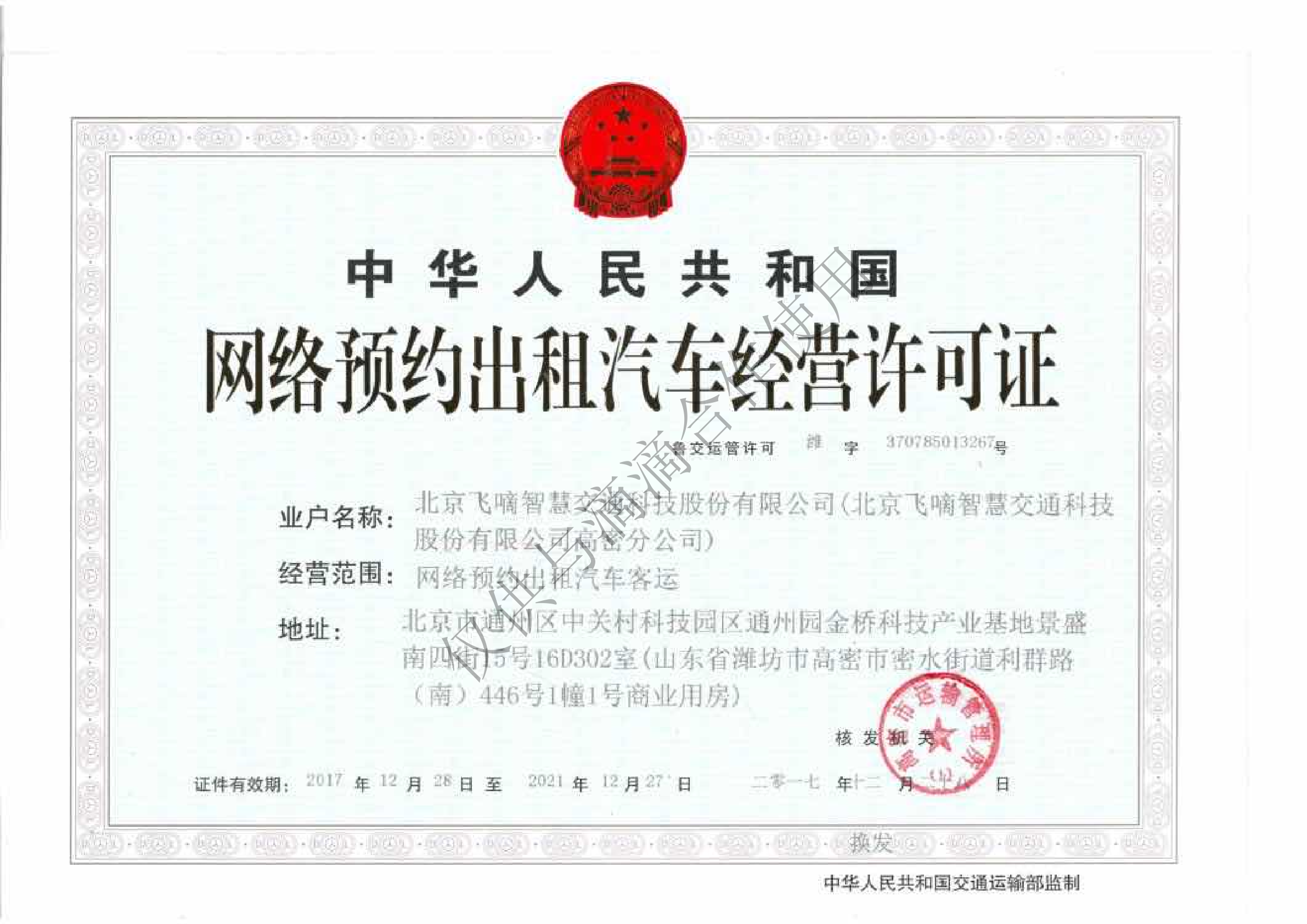 飞嘀打车 - 网约车经营许可证(高密-潍坊)