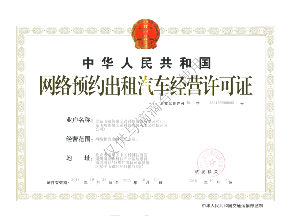 飞嘀打车 - 网约车经营许可证(杭州)