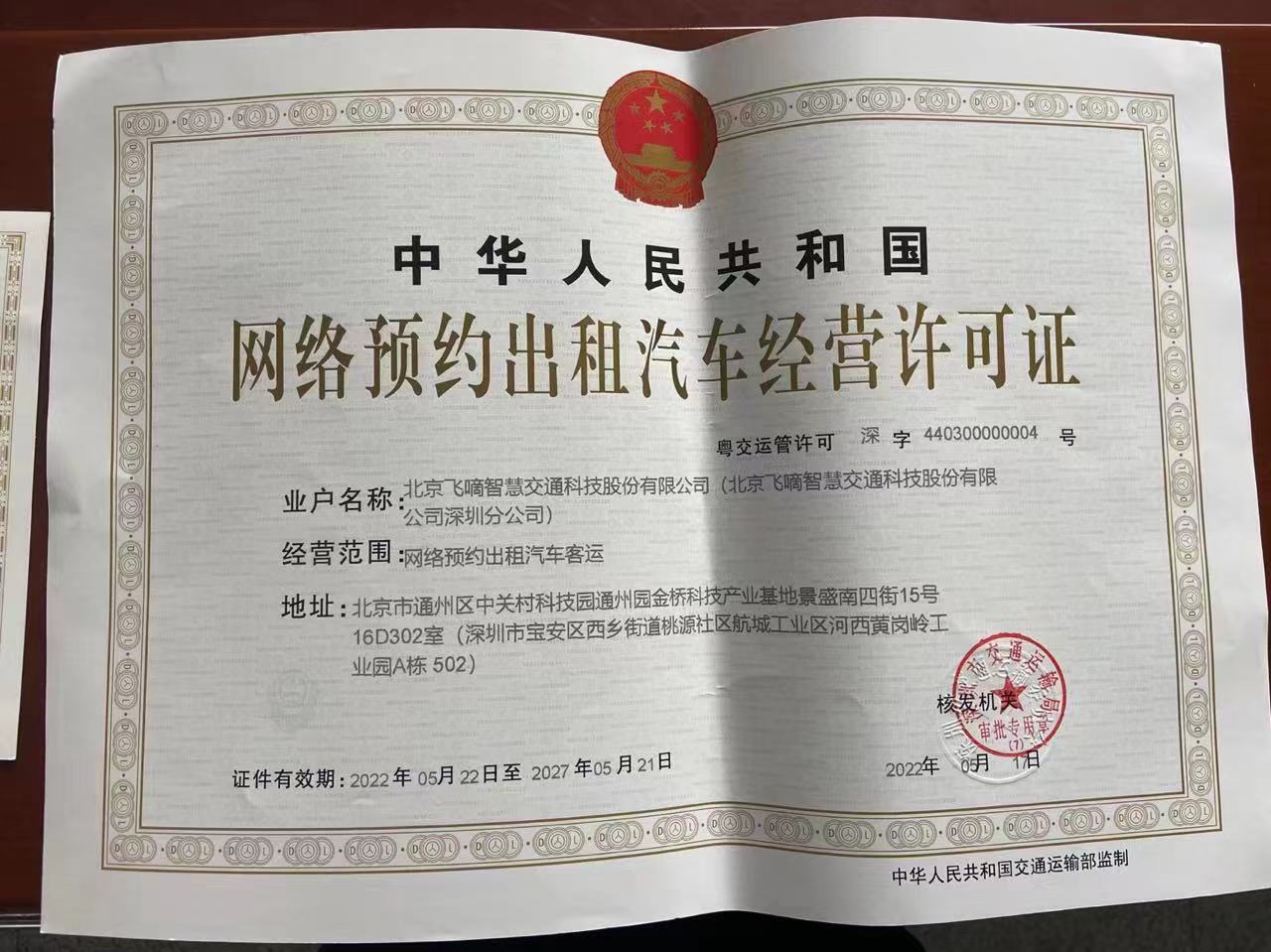 飞嘀打车 - 网约车经营许可证(深圳)