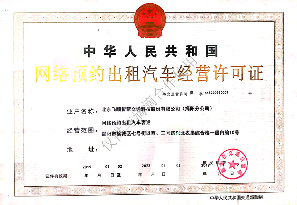 飞嘀打车 - 网约车经营许可证(揭阳)