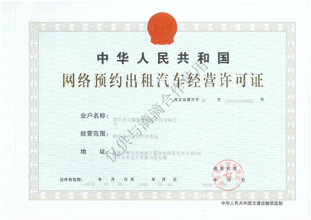 飞嘀打车 - 网约车经营许可证(莆田)